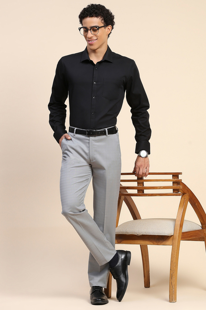 Step into effortless sophistication with Mr. Huffman Men Self Check Formal Trousers. Crafted with precision and featuring a fine checkered weave, these trousers offer a sleek silhouette and timeless appeal. Pair them with a crisp shirt and formal shoes to exude confidence and modern charm. Model height is 6 feet and wearing 32 size. Disclaimer Please note that the color of the product shown on the website may differ slightly from the actual product due to factors such as lighting and screen display.
