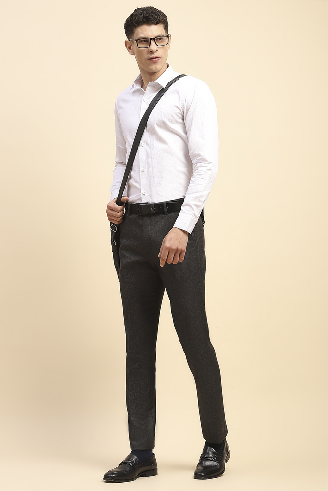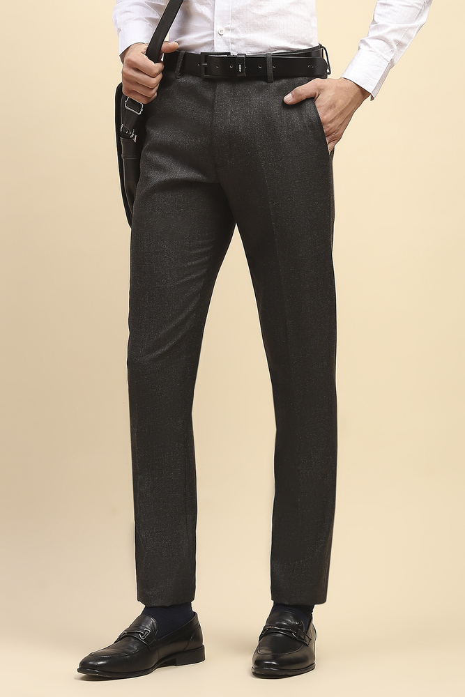 Mr.Huffman Men Grey Poly Viscose Lycra Formal Pants