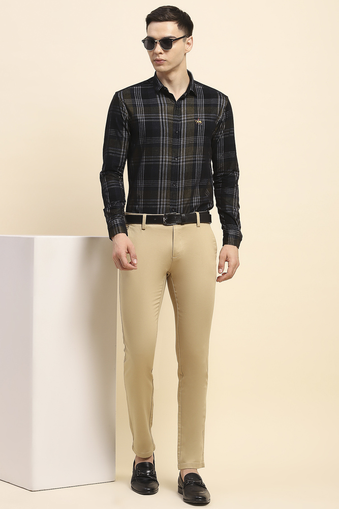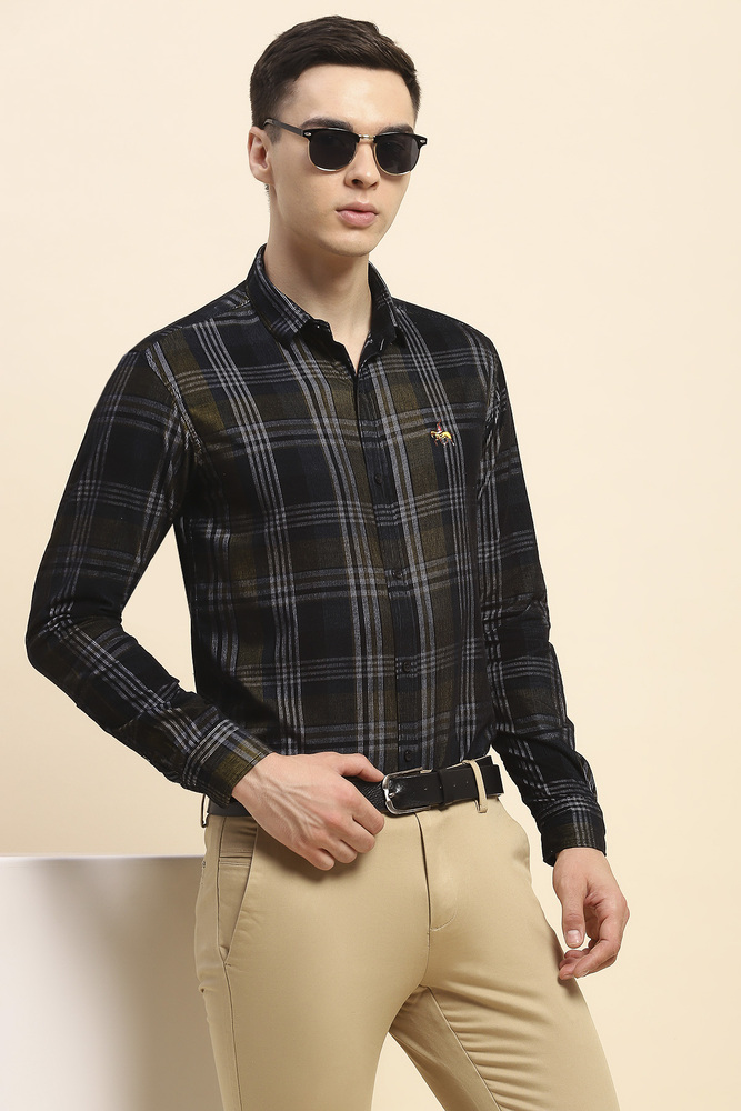 This shirt from the House of Mr. Huffman is your window into the fashion world. We recommend this highly captivating shirt for your next boardroom meeting. To accentuate your casual dressing style and ensuring extra comfort for a hassle free day during travel, just pair this shirt with a regular trouser in contrasting color hue and casual shoes along with a tie for a classic look while travelling. Model height is 6.1 feet and wearing M size. Disclaimer Please note that the color of the product shown on the website may differ slightly from the actual product due to factors such as lighting and screen display.