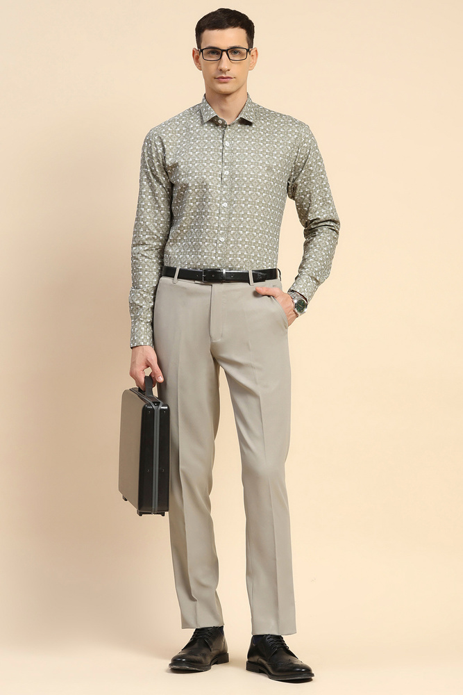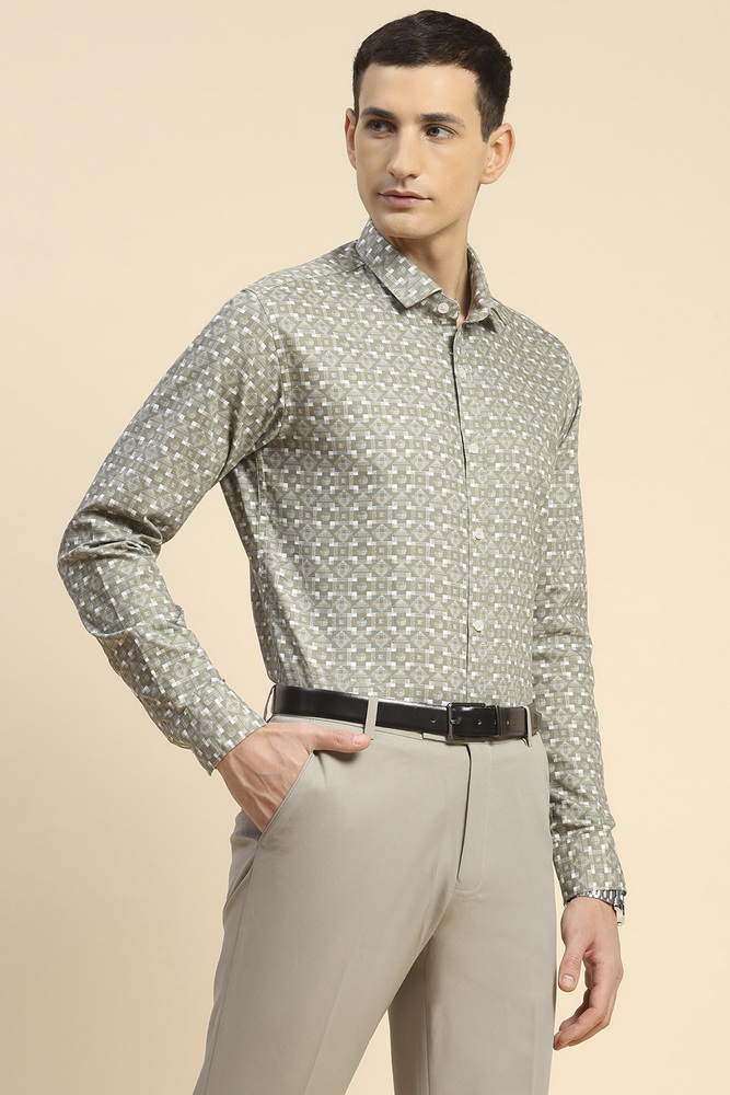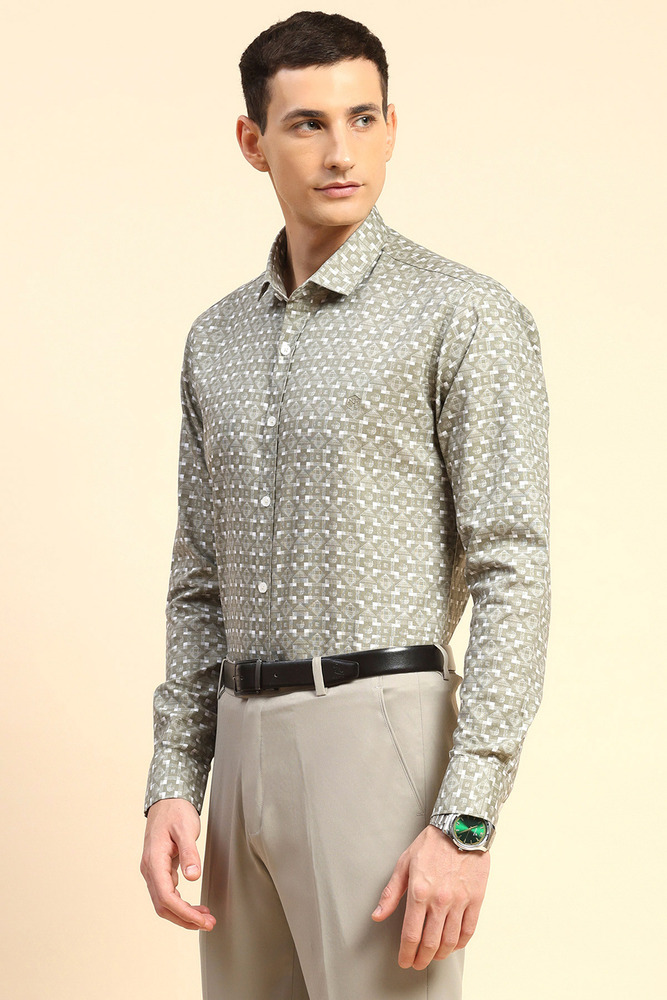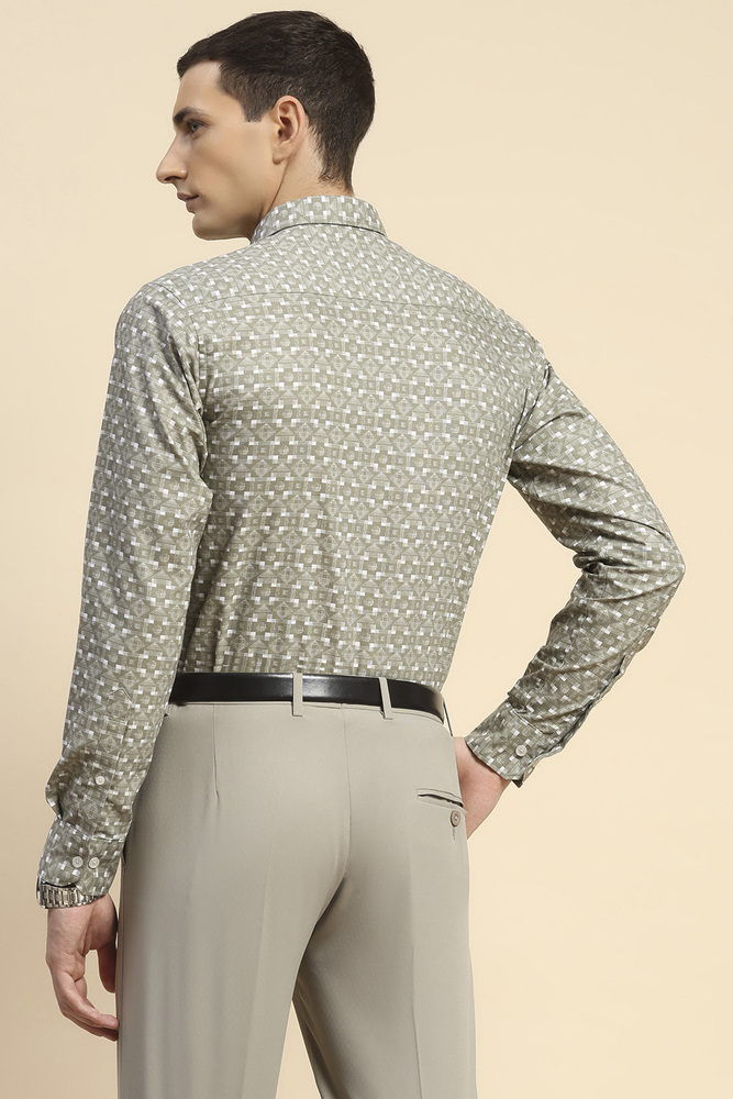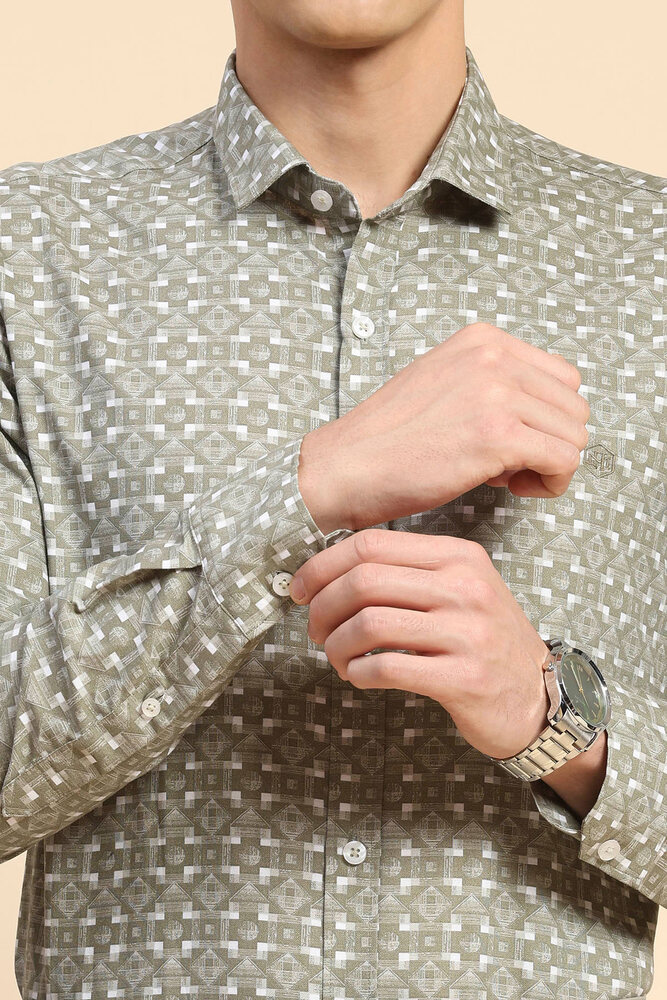 Mr. Huffman Olive Geometric Print Regular Fit Shirt With Underarm Roll On