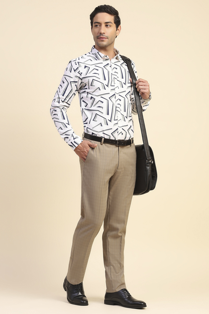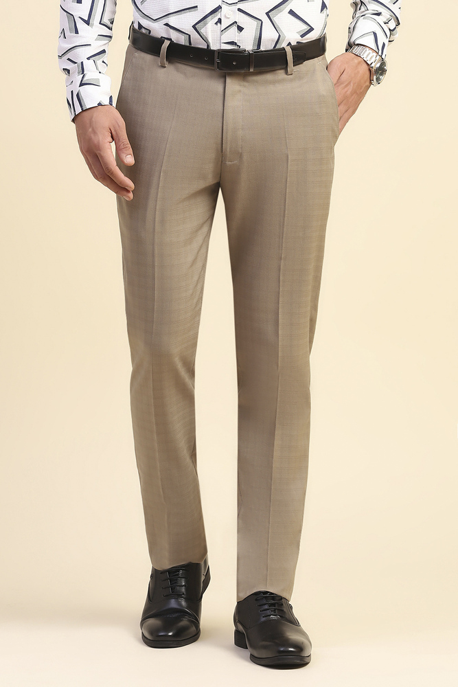 Mr. Huffman Sand Regular Fit Poly Lycra Trouser