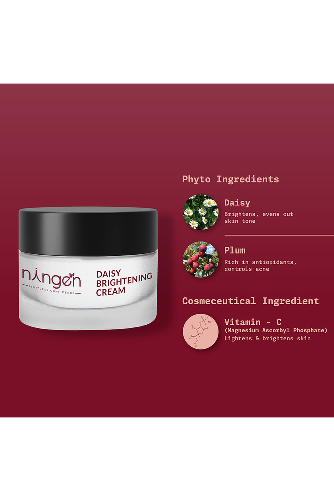 Daisy Brightening Cream combines the brightening and clarifying properties of daisy extract, the antioxidant benefits of Vitamin C, and the nourishing effects of Plum extract, leaving your skin looking radiant and even toned.