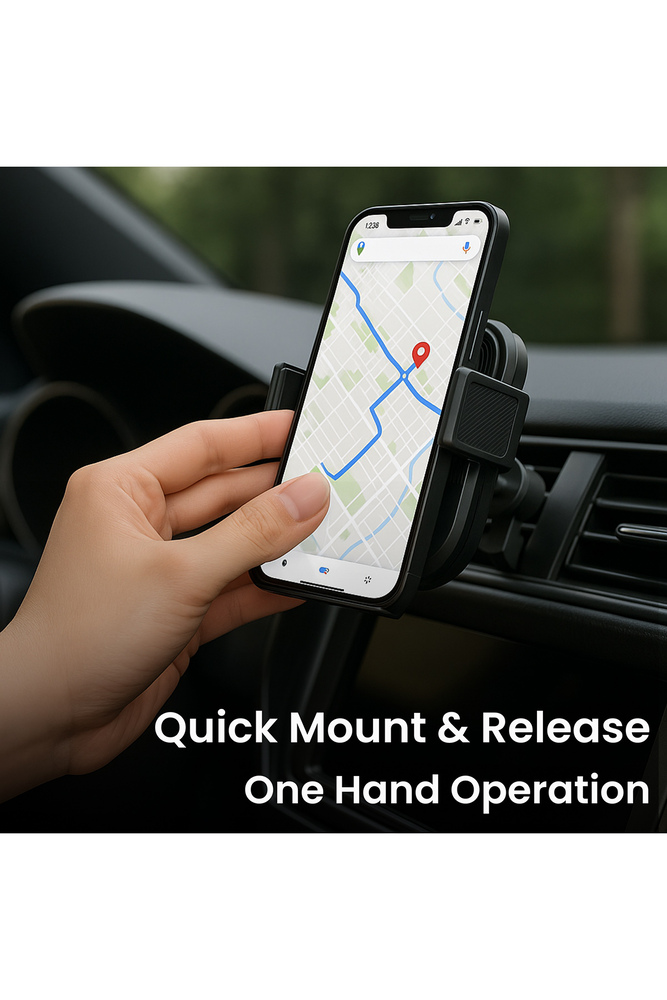 Type- Car AC Vent Holder Material, Design Type- Premium Build, Clip On AC Vent, One Click Release Features- Compact, Easy Installation, Secure Grip Compatible Devices- Universal Smartphones