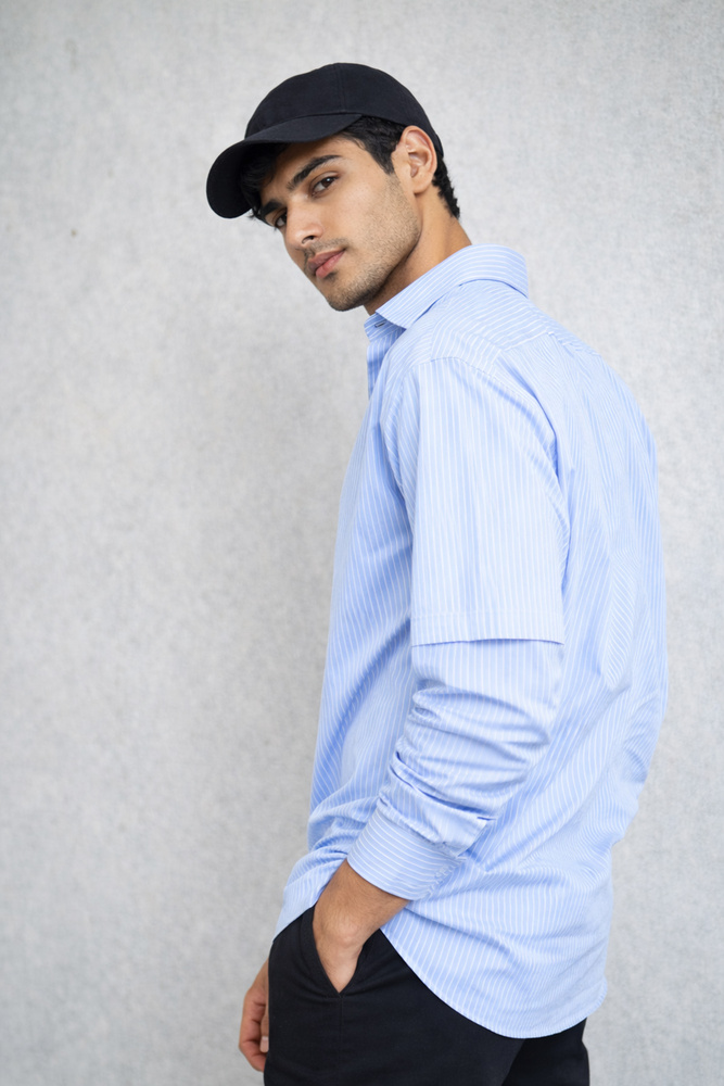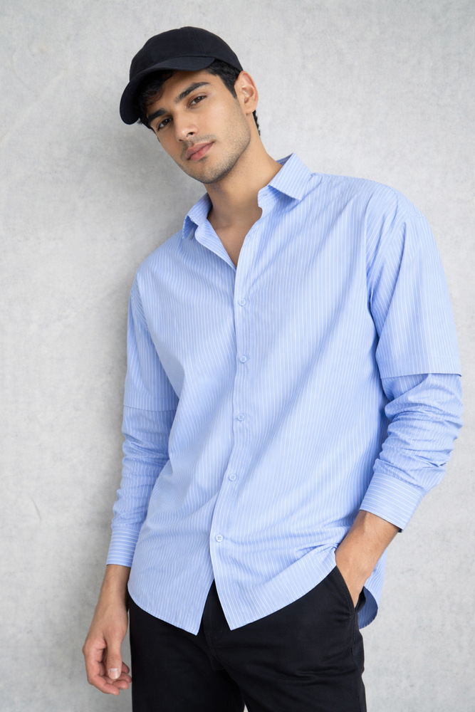 Refresh your everyday wardrobe with this classic blue and white vertical striped shirt. Crafted from opaque fabric, it features a smart spread collar and a full button placket for a timeless look. Designed with a functional chest pocket, long regular sleeves, and a straight hemline, this shirt blends comfort with effortless style. Perfect for casual outings or relaxed workdays, it pairs easily with jeans or chinos for a polished yet laid-back vibe.