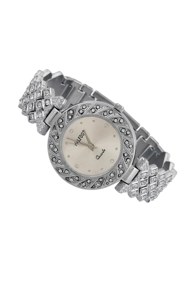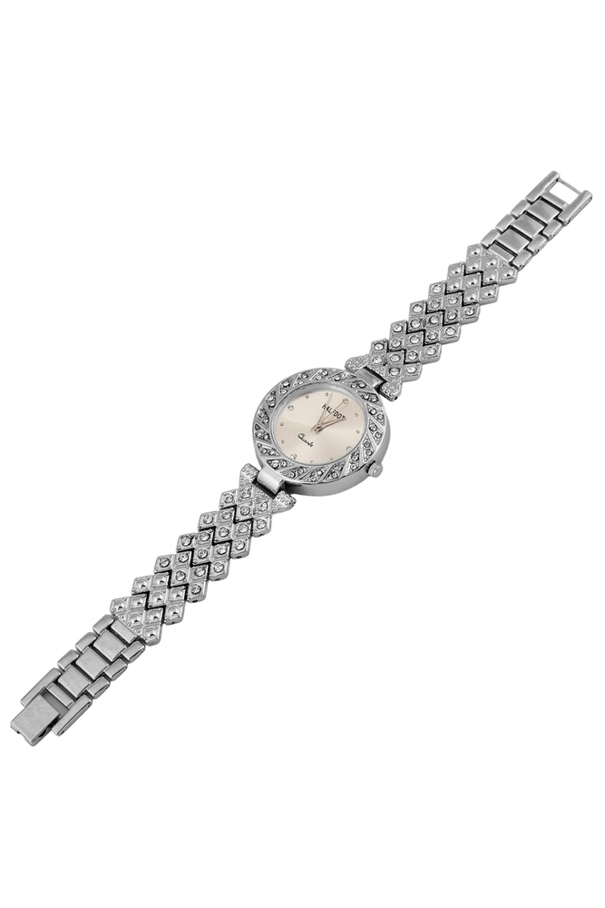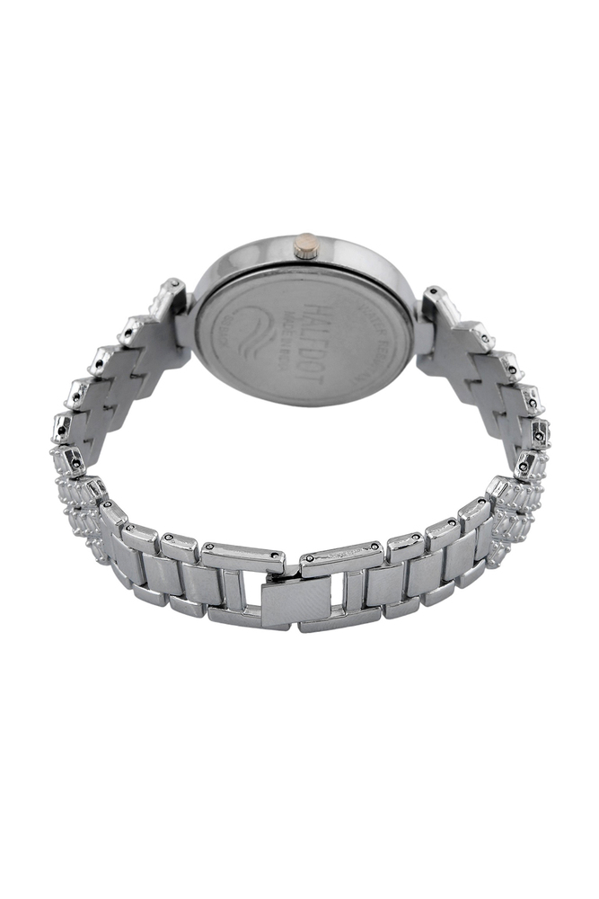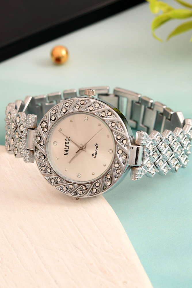 Silver Round AD Stone Adjustable Beautiful Analog Wrist Watch for Women and Girls