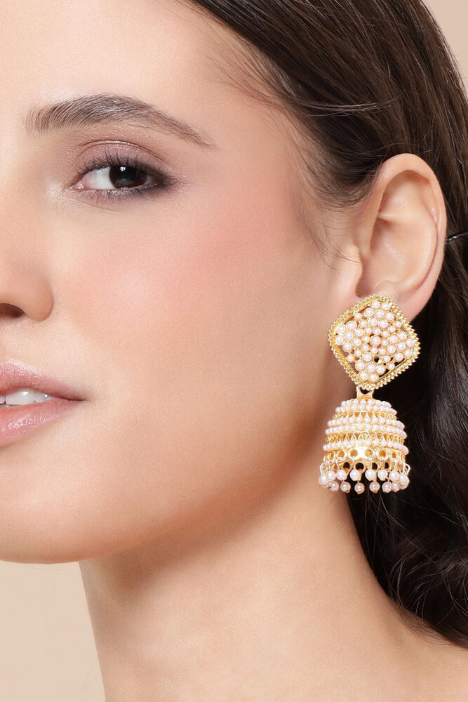 Siona Designer White Pearl Dome Shape Jhumka Earring for Women and Girls