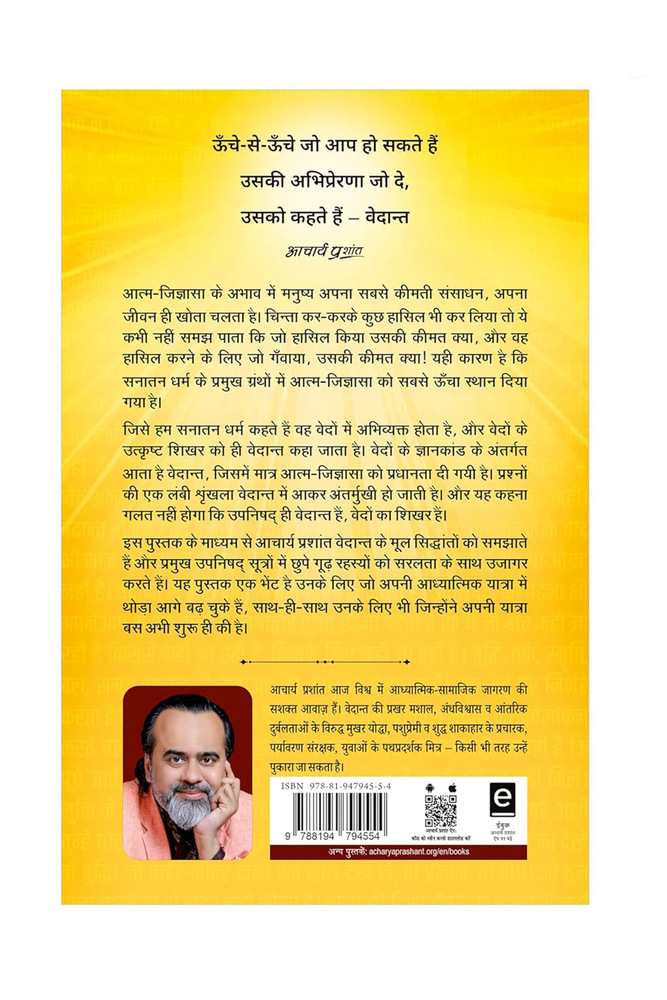 मनुष्य को ज्ञात सबसे प्राचीन शास्त्रों में वेद शीर्ष पर आते हैं और वेदान्त वैदिक सार का परम शिखर है. शास्त्रीय रूप से उपनिषद्, ब्रह्मसूत्र और श्रीमद्भगवद्गीता वेदान्त के तीन स्तम्भ माने जाते हैं, जिनको प्रस्थानत्रयी भी कहा जाता है. वेदान्त के सूत्र मात्र दार्शनिक चिन्तन का विषय नहीं हैं, वे हमारे जीवन की बात करते हैं. चाहे हमारी व्यक्तिगत परेशानिया हों या वैश्विक समस्याऍं, वेदान्त हमें व्यक्ति और संसार के सच से परिचित करवाता है और उसका समाधान भी देता है. शताब्दियों से मनुष्य अनेक छोटे बड़े प्रश्नों को सुलझाने की कोशिश करते रहे हैं लेकिन उनमें केंद्रीय प्रश्न रहा है मैं कौन हूँ? इस मूल प्रश्न का अंतिम समाधान हमें वेदान्त में ही मिलता है. प्रत्येक व्यक्ति मुक्ति के लिए पूरा जीवन यत्न करता है लेकिन और बंधनों में ही फँसता चला जाता है. वेदान्त की शिक्षा हमें बताती है कि हमारा मूल बंधन क्या है और उससे मुक्ति का मार्ग भी प्रशस्त करती है. सिर्फ़ भारत ही नहीं, विश्व के अनेक संतों, विचारकों, कवियों, वैज्ञानिकों ने वेदान्त की महिमा को सराहा है और उससे प्रेरणा पाई है. भारत ने दुनिया को जो अमूल्य उपहार दिया है वो आत्मा है, और यह वेदान्त की ही देन है. आचार्य प्रशांत ने वेदान्त में जीवन के गूढ़ रहस्य और उनसे जुडी हुई भ्रांतियों पर सरल शब्दों में विस्तृत व्याख्या की है.
