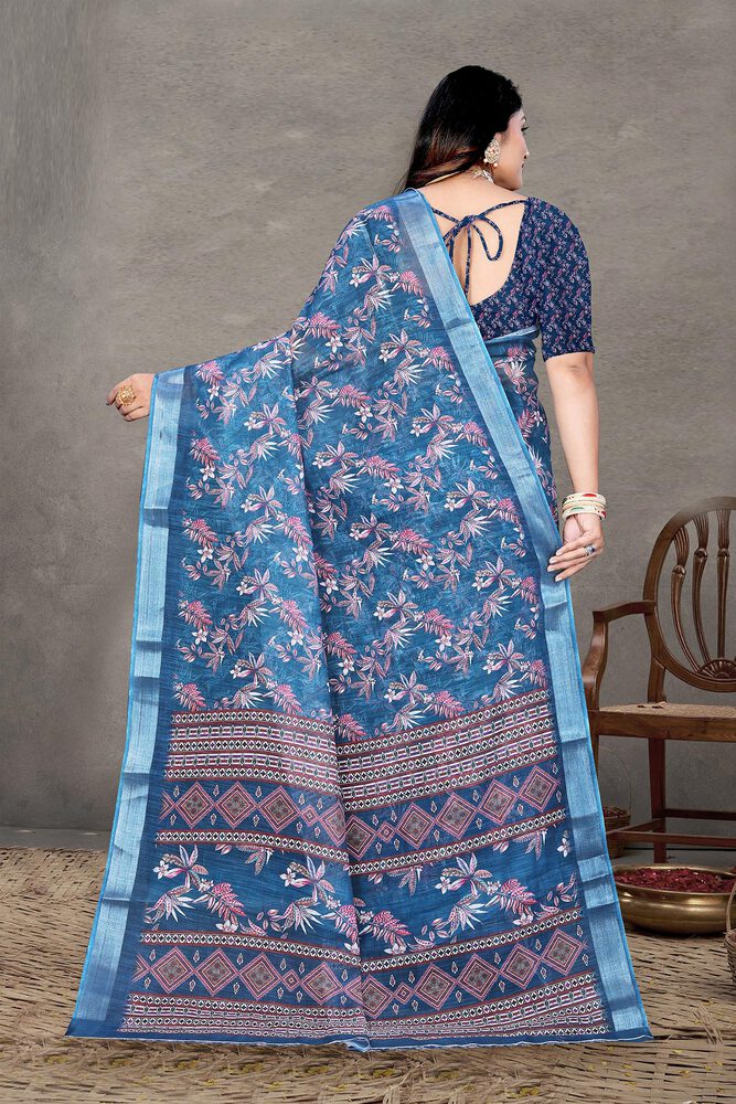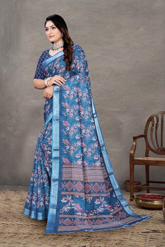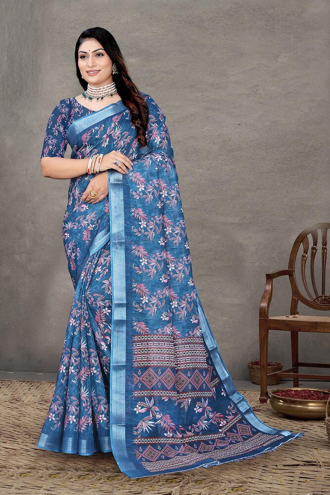 Fabric : Linen Cotton Work : Digital Print Saree Length: 6.3 (With Blouse ) Blouse Fabric: Digital Cotton