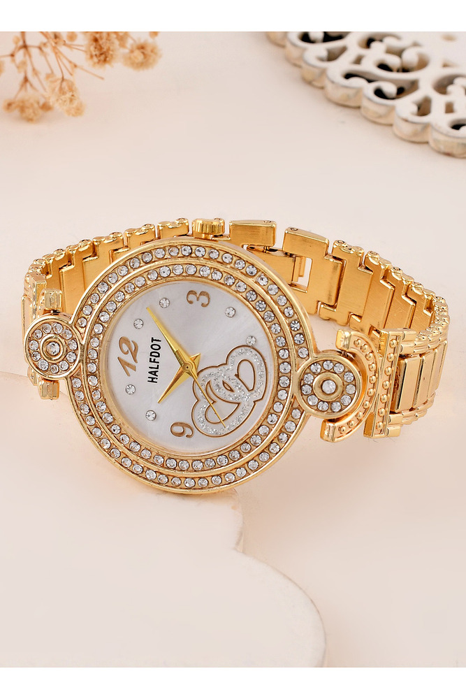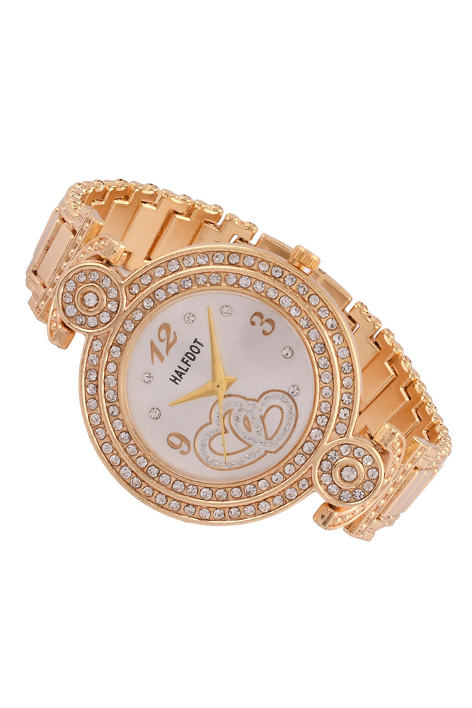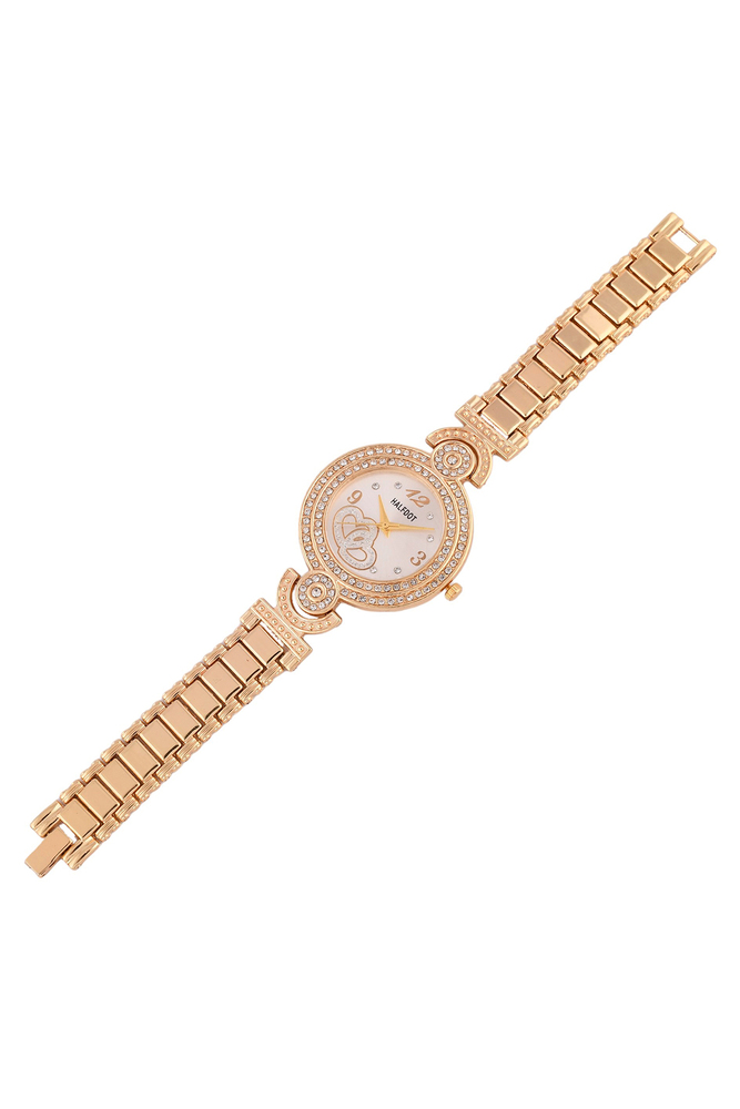 Women Rose Gold AD Stone Round Dial Adjustable Beautiful Analog Wrist Watch