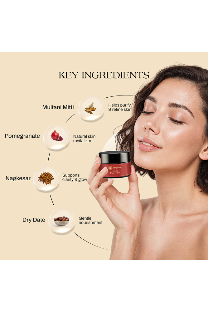 A soothing Ayurvedic formulation enriched with Multani Mitti, Pomegranate, Turmeric, and Nagkesar. It gently purifies the skin’s surface and restores its natural balance, leaving a refreshed and radiant look after every use. Its creamy, mineral-rich texture gives the skin a soft, refined, and revitalized appearance.