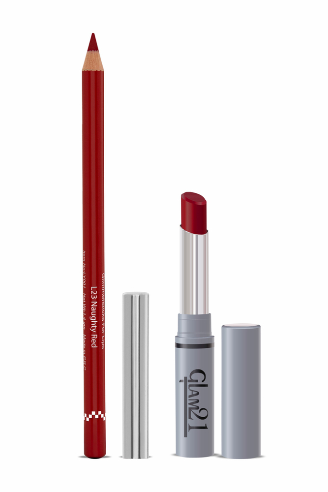 Glam21 Long Lasting Non-Transfer Lipstick-Red Mousse and Lip Liner-Naughty Red, Pack of 2