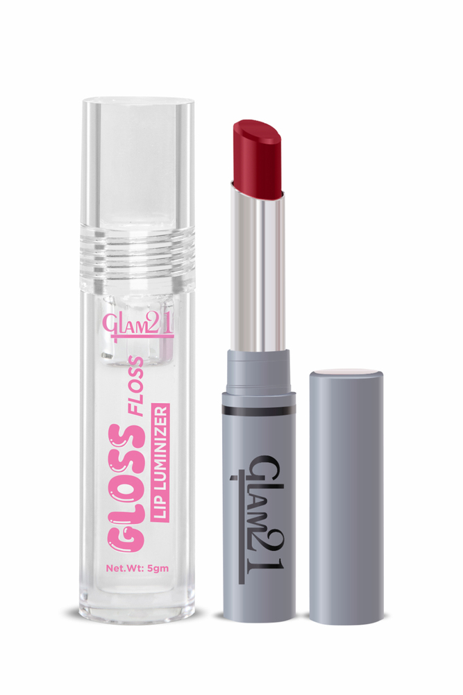 Glam21 Long Lasting Non-Transfer Lipstick-Red Power and Gloss Floss Lip Gloss |Long Lasting Bold and Smudge Proof, Pack of 2