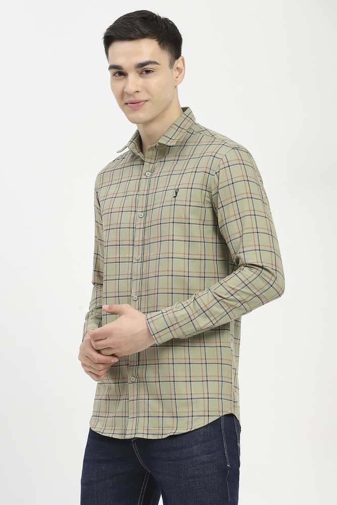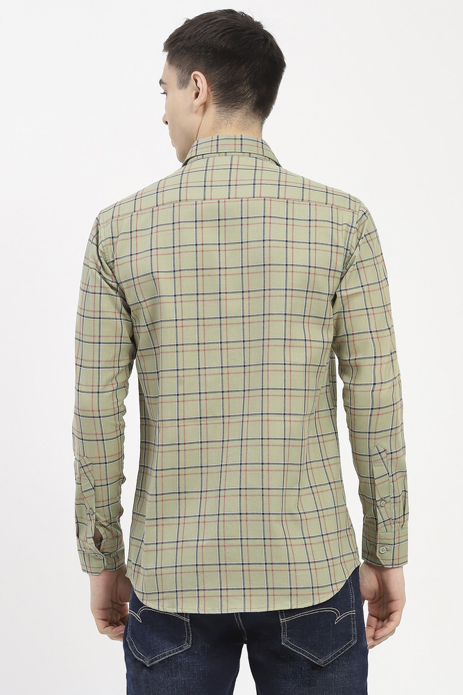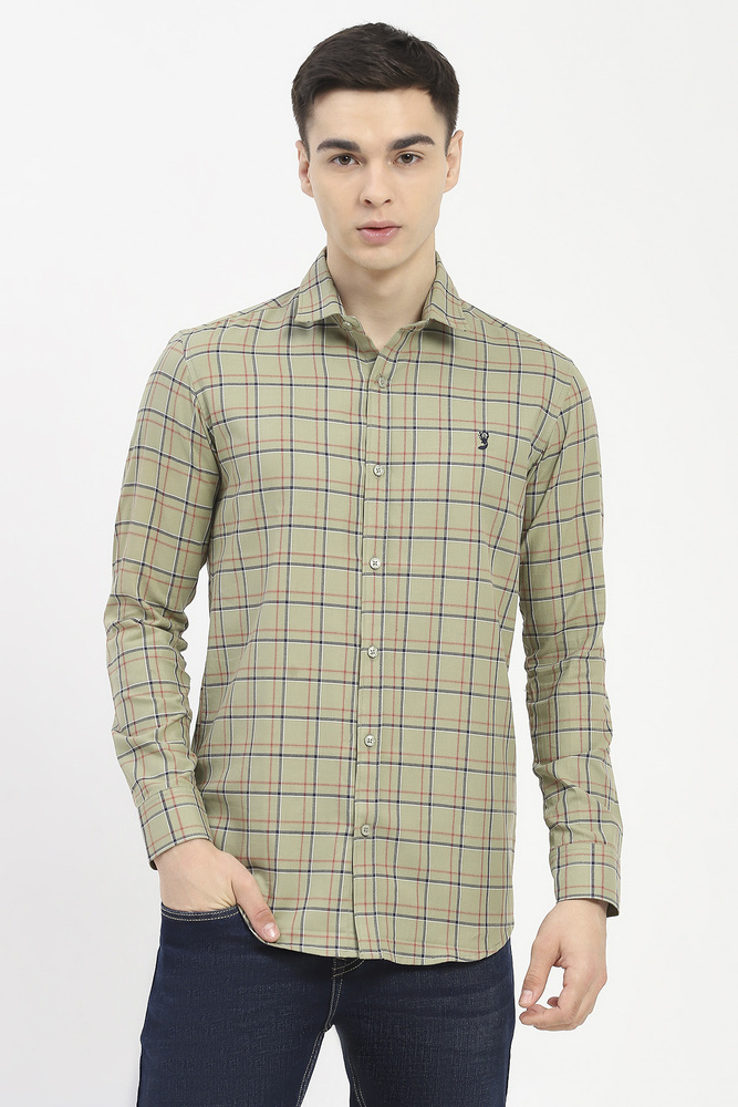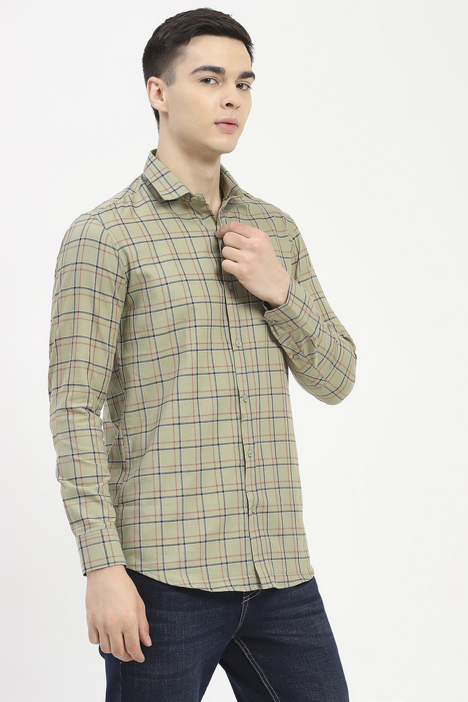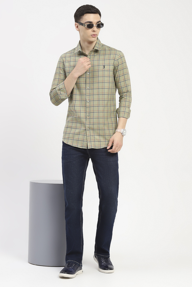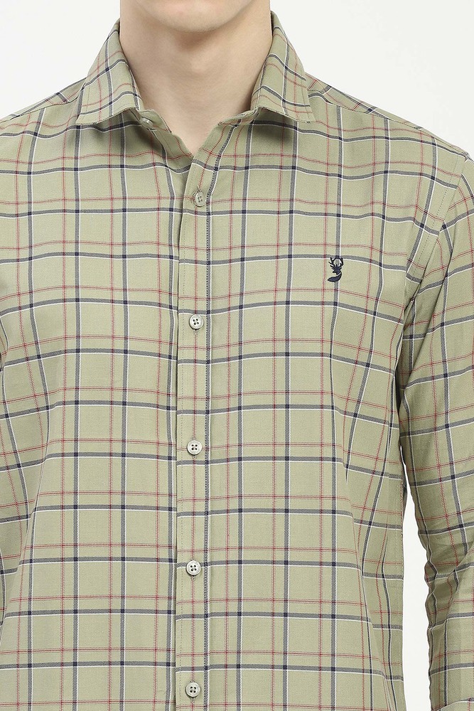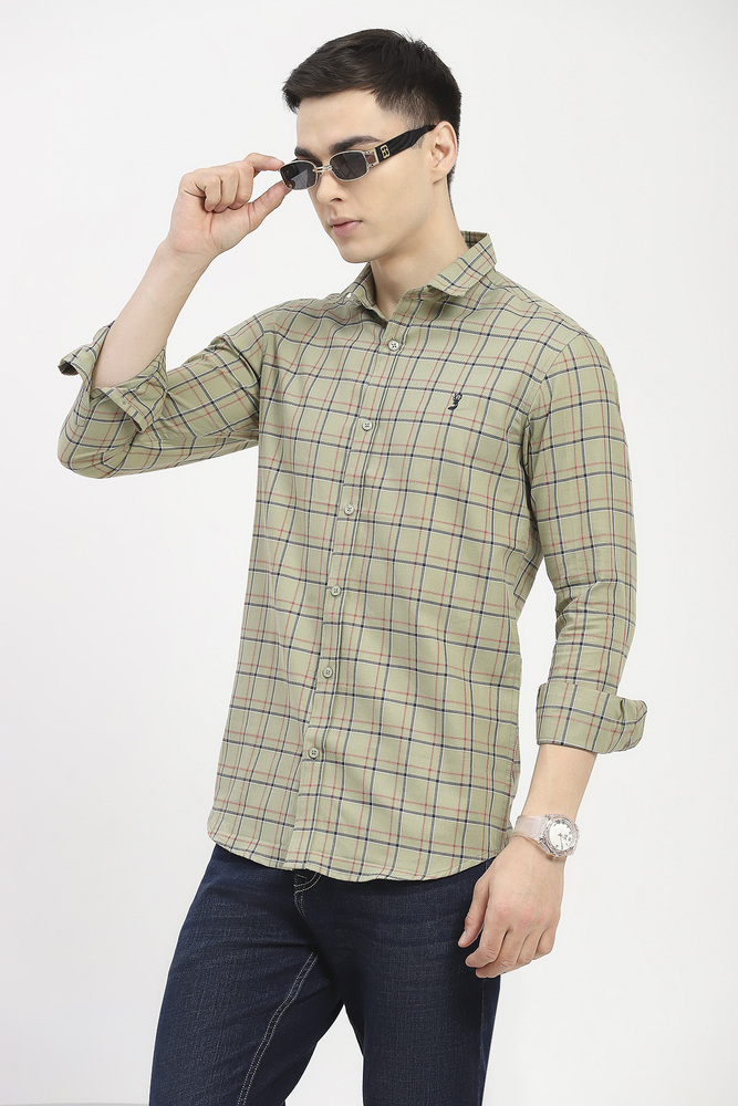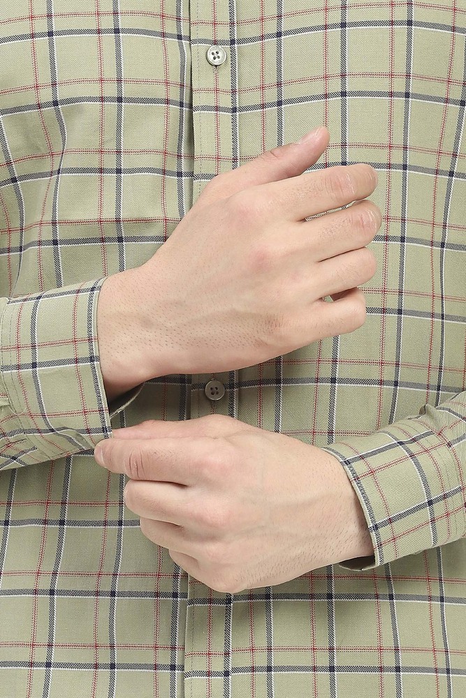 Ifazone Men Light Green Button Down Check Shirt with Fresh Tone