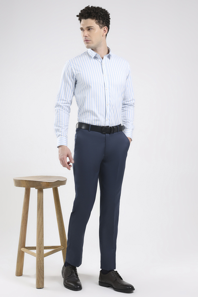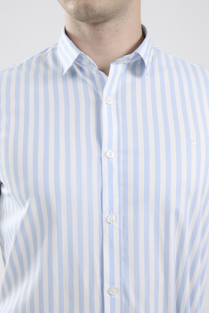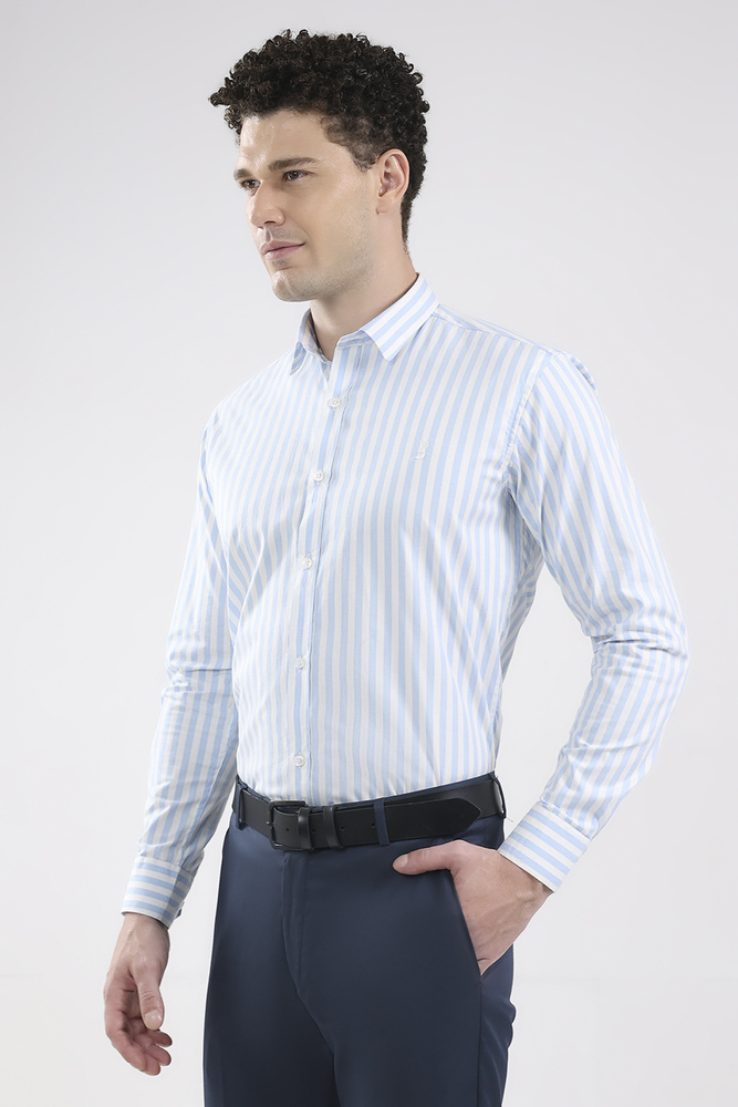 Refresh your wardrobe with the Ifazone Men White Blue Striped Cotton Shirt. Crafted from premium cotton, this shirt features crisp blue stripes on a white base, creating a timeless look. Perfect for both office wear and weekend outings, it offers comfort and versatility in one stylish package. Model height is 6.1 feet and wearing M size. Disclaimer Please note that the color of the product shown on the website may differ slightly from the actual product due to factors such as lighting and screen display.