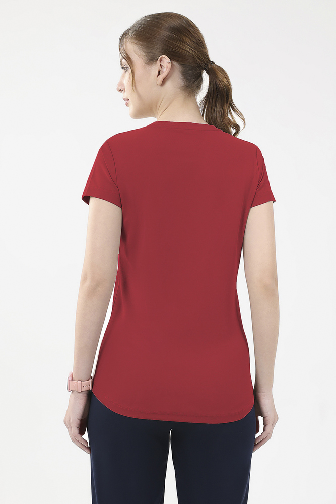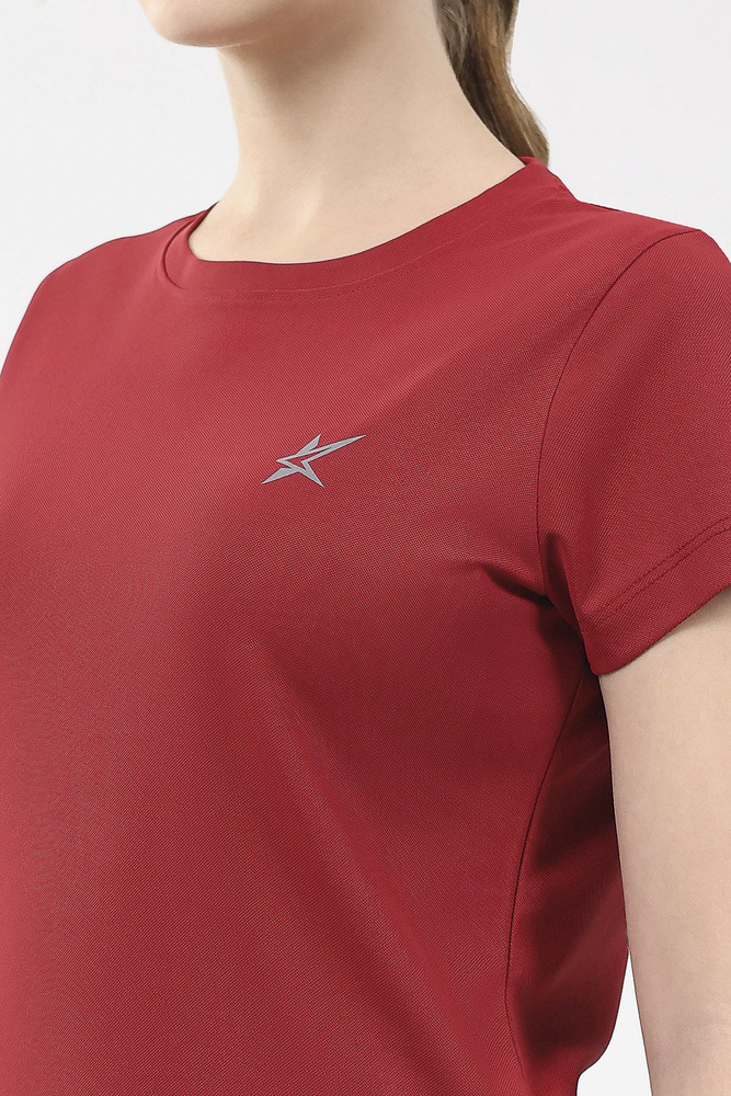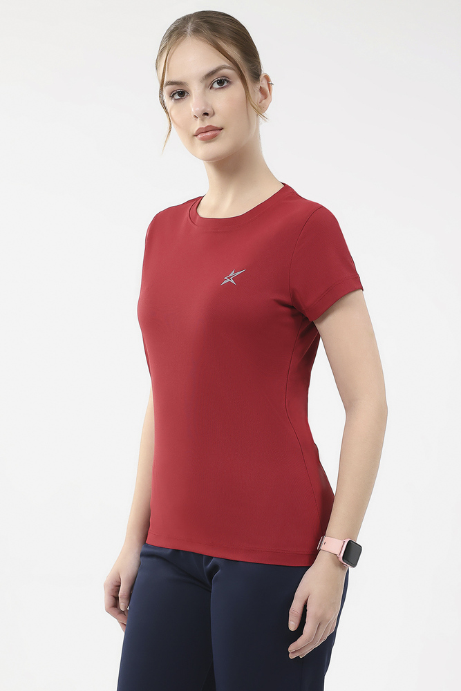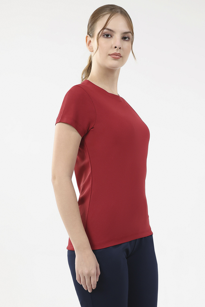 Kuefit Women Red 100% Polyester Round Neck Tee