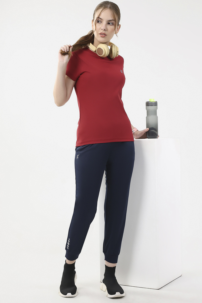 Upgrade your casual collection with this round neck Tee crafted for women from 100% polyester. Designed with short sleeves and a classic fit, this Tee ensures lightweight comfort and long lasting durability. Perfect for pairing with jeans, shorts, or leggings, its suitable for everyday outings, workouts, and athleisure looks. Enjoy the versatility and easy care that makes this Tee essential in every wardrobe. Model height is 5.7 feet and wearing S size. Disclaimer - Please note that the color of the product shown on the website may differ slightly from the actual product due to factors such as lighting and screen display.