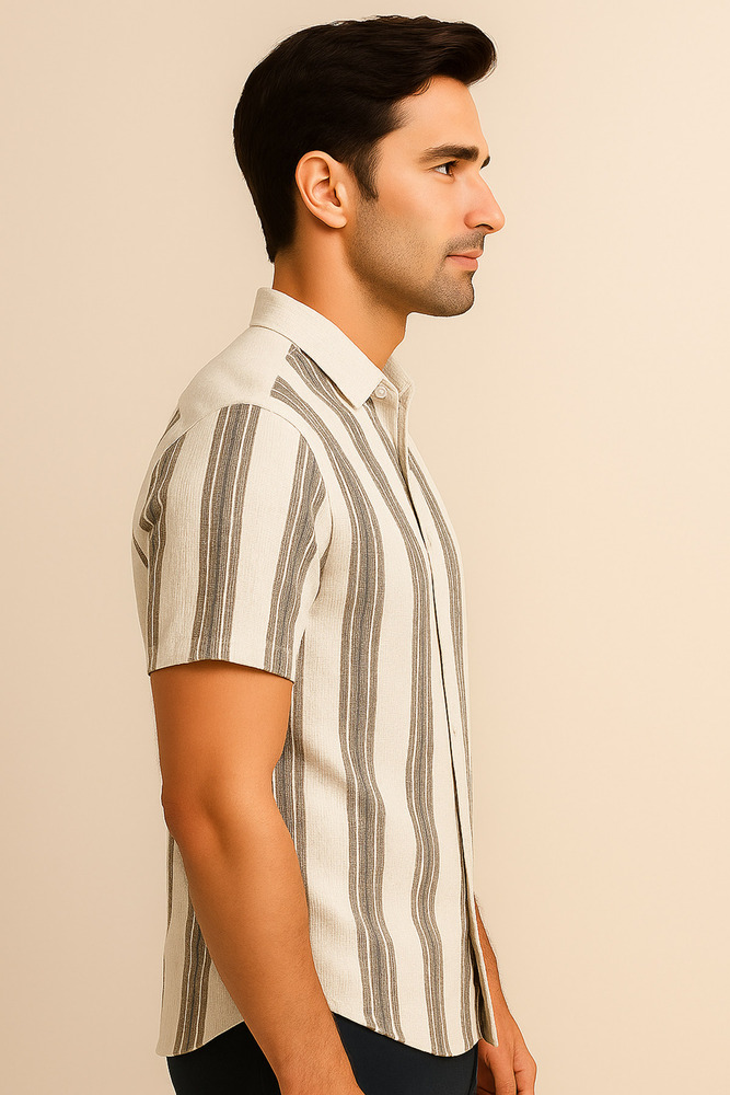 Elevate your everyday style with this versatile Men Half Sleeve Casual Shirt. Crafted from premium cotton, this shirt offers a soft and comfortable fit, perfect for all day wear. Its modern slim fit design accentuates your silhouette, while the half sleeves add a relaxed yet polished vibe, making it ideal for casual outings, office settings, or weekend get togethers.