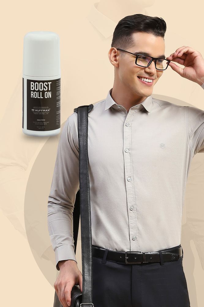 Stay cool and stylish with the Mr. Huffman Florida Dobby Shirt in Beige. Made from 100% cotton, this breathable shirt features a textured dobby weave that adds a refined touch to your everyday look. The built in underarm roll on layer keeps you fresh and confident all day long. Ideal for casual outings or semi formal occasions, this beige shirt offers both comfort and functionality.
