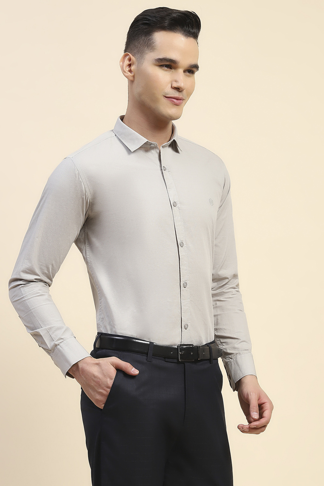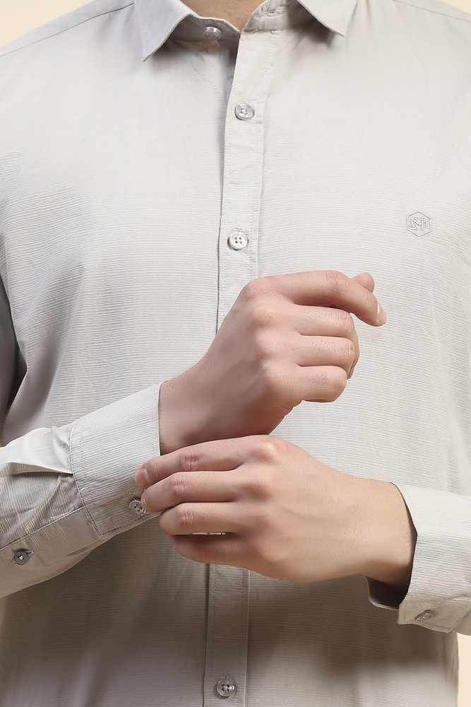 Mr. Huffman Florida Dobby Shirt Beige Cotton Textured for Men with Underarm Roll On