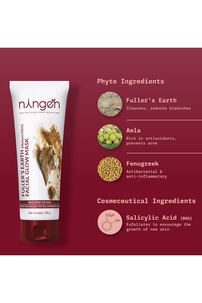 Fullers Earth Facial Glow Mask is formulated with natural ingredients such as Fullers Earth, Amla, and Fenugreek that cleanse, soothe, and evens out the skin tone, and controls acne revealing a clearer and brighter glowing skin.