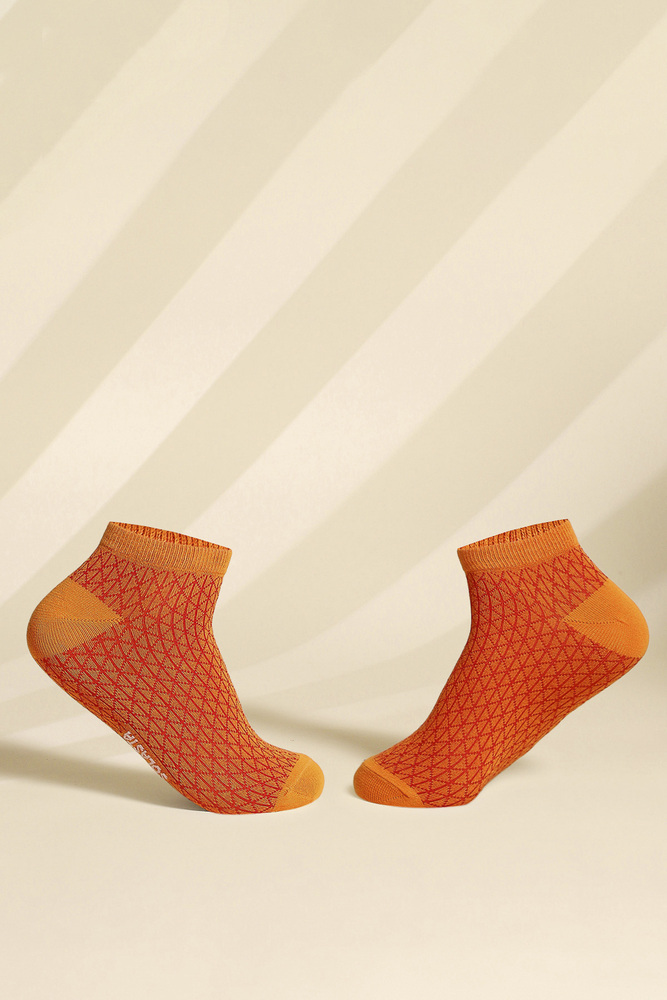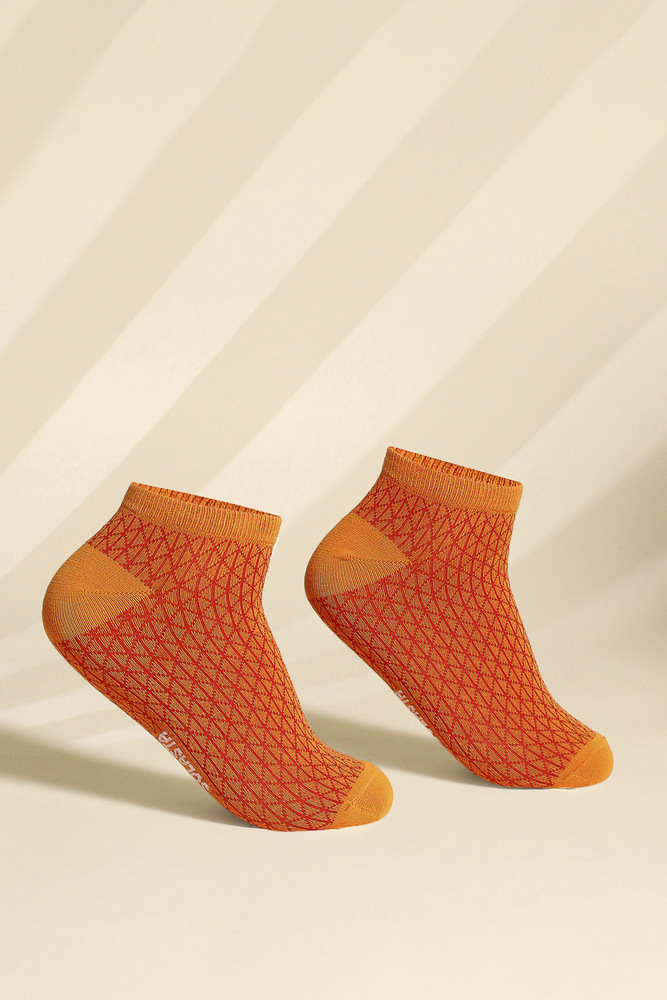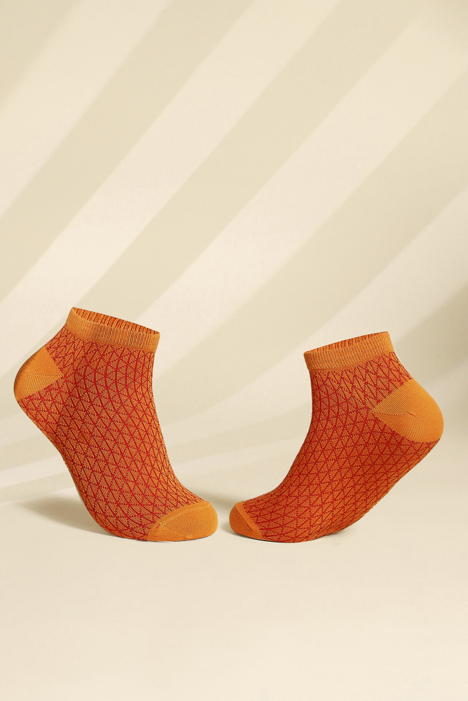 Solasta Men Orange Cotton Spandex Ankle Length Socks