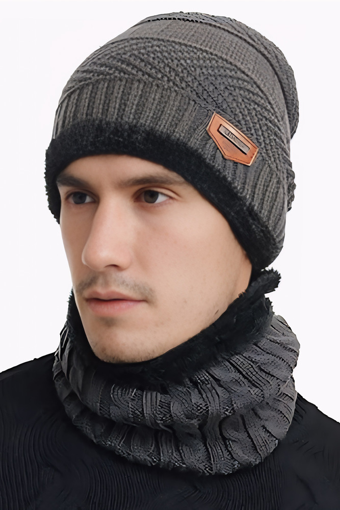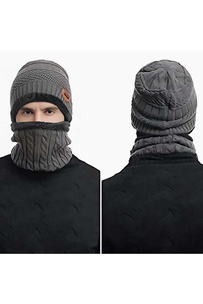 Unisex Woolen Winter Cap with Neck Muffler Set Warm Knitted Cap And Neck Warmer Combo for Men