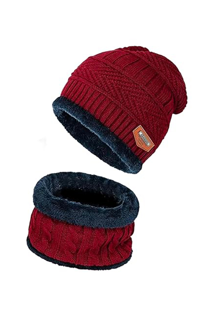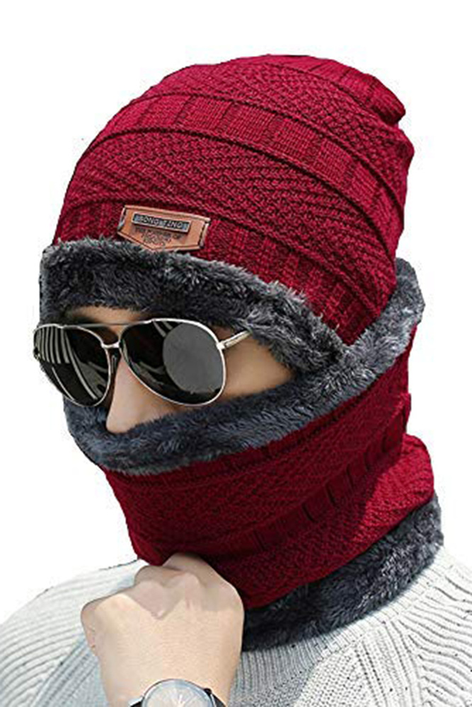 Unisex Woolen Winter Cap with Neck Muffler Set Warm Knitted Cap And Neck Warmer Combo for Men